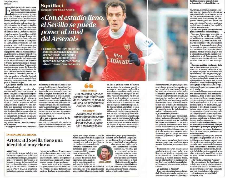 Ahead of the European clash, ABC Sevilla had a chat with Sébastien Squillaci, who represented both the La Liga side and the Gunners during his playing career.