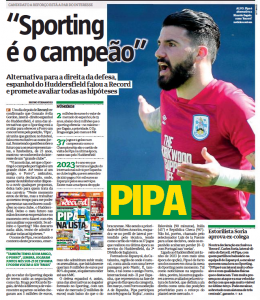 Back on Monday, Portuguese newspaper Record featured a story claiming that Sporting are interested in signing Huddersfield Town’s Pipa.