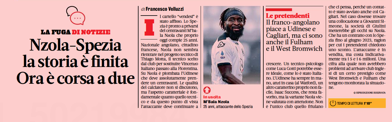 Closer to home, it’s Udinese and Cagliari who are providing competition for West Brom and Fulham for a player who ‘doesn’t appear to be in the plans of Thiago Motta’.