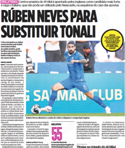 That’s according to O Jogo, who cover the player today amid claims that Newcastle have immediately turned their focus to Neves as they plan for life without Tonali.